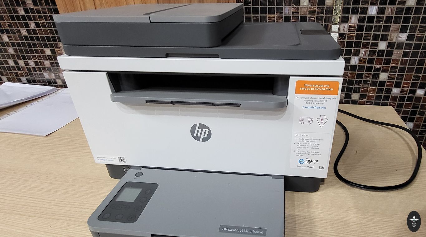 Printeris strādā korekti, ir kabeļi. Iespēja printeri savienot ar telefonu, strada gan ar Wi Fi gan Bluetooth.