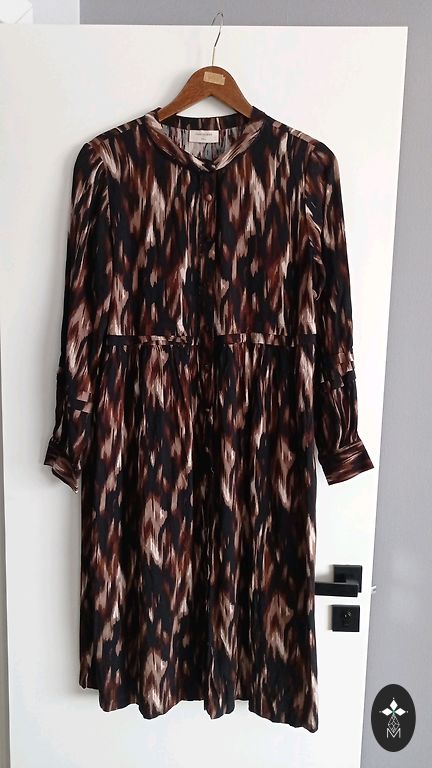 Klassikaline, sobib nii igapäevaseks kandmiseks, kontorisse kui ka mõnele üritusele. Ülemises osas vooder, taga peidetud tõmblukk. Ilusad värvid, tugev kangas, ei paista läbi. Ostetud siit, kuid mulle liiga kitsas rinnapiirkonnas. Sobib S või väikese M suurusega väikese rinnaga/õlgade osaga.