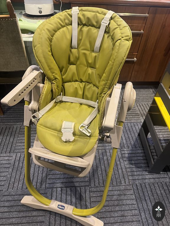 Barošanas krēsliņš, der arī bēbīšiem kuri vēl nesēž. Krēsla muguriņu var novietot vairākos stāvokļos, arī pusguļus. Ir drošības jostiņas. Var regulēt arī krēsla augstumu. Viss darbojās. Bēbīša ieliktnītim plaisā audums.