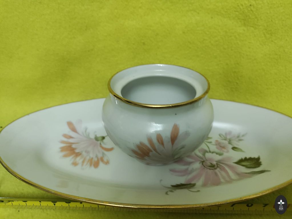 12 seklie šķīvji. 18 cm diametrs. 10 sarkanie zīmogi, 2 zaļie zīmogi. Plaisu nav.