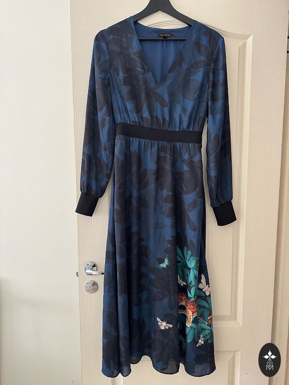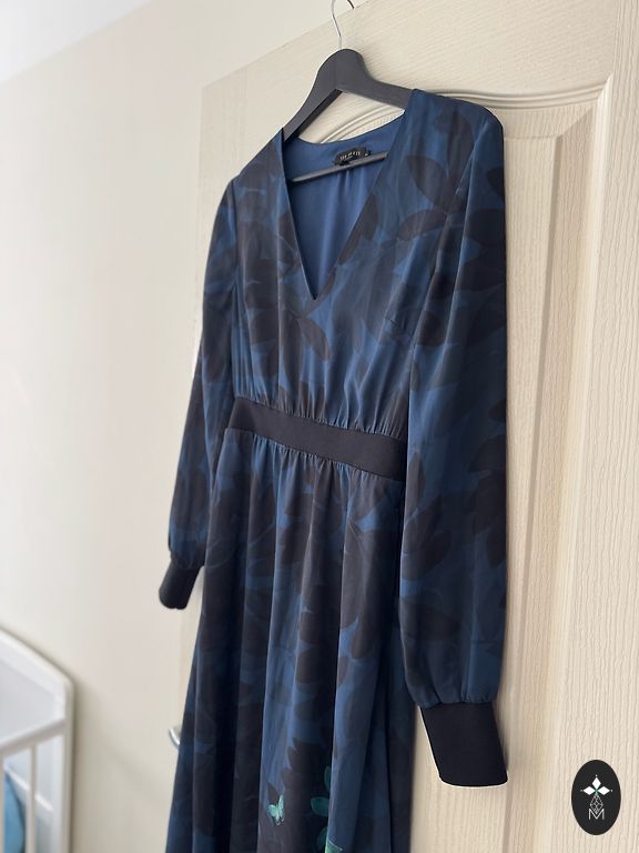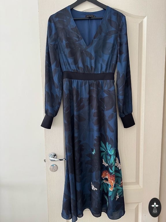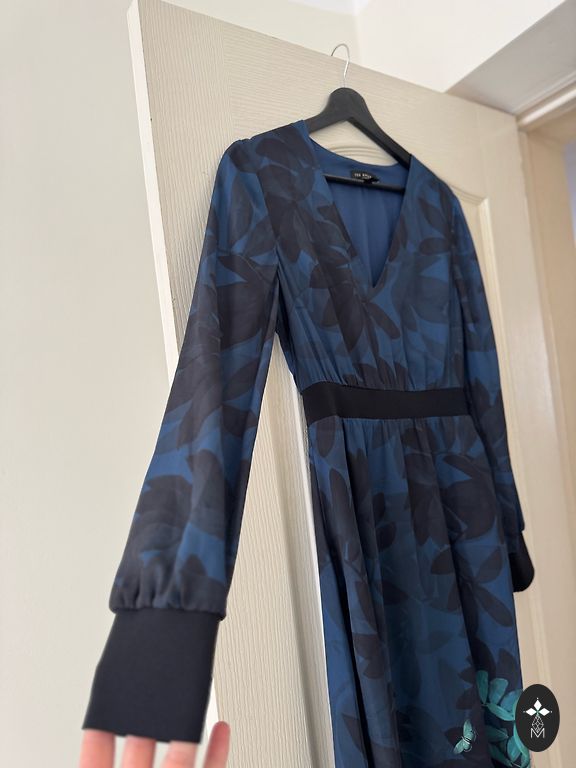 Labai graži suknelė, subtilus spalvos, puikios kokybės, nėriniuota, siuvinėta perlais. Puikios būklės, dėvėta vieną kartą, ilgis 148 cm, krūtinės apimtis 86 cm, tinka S/M dydžiui.