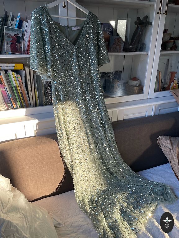 1X elastinė vakarinė suknelė. Tinka 42 ir 44 dydžiams. Elastinė medžiaga.