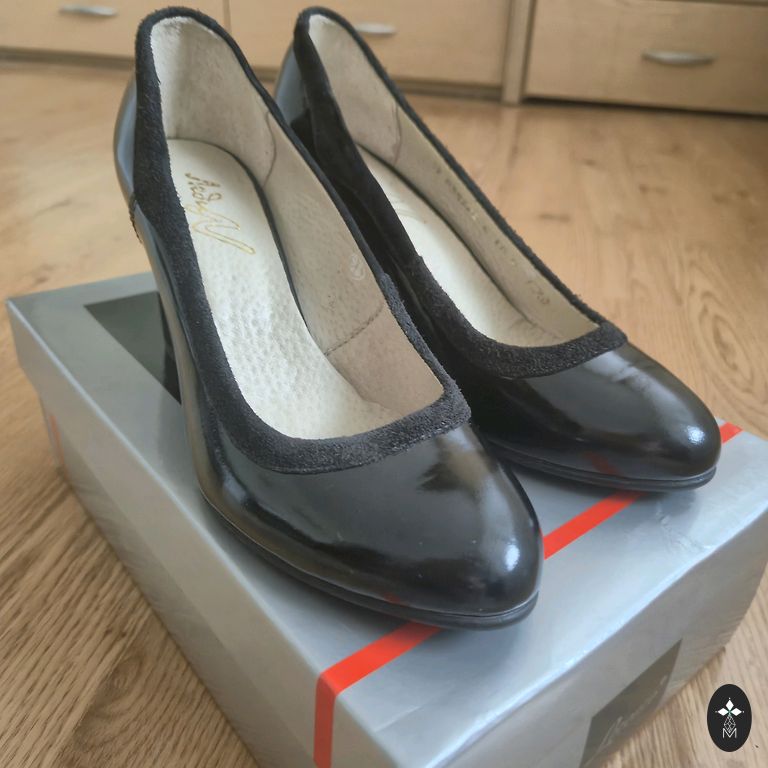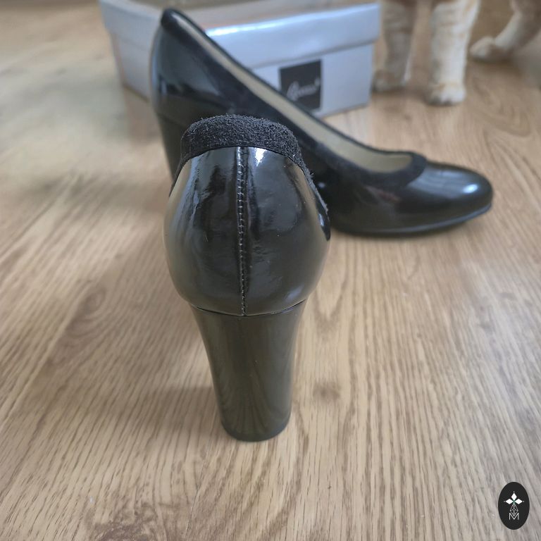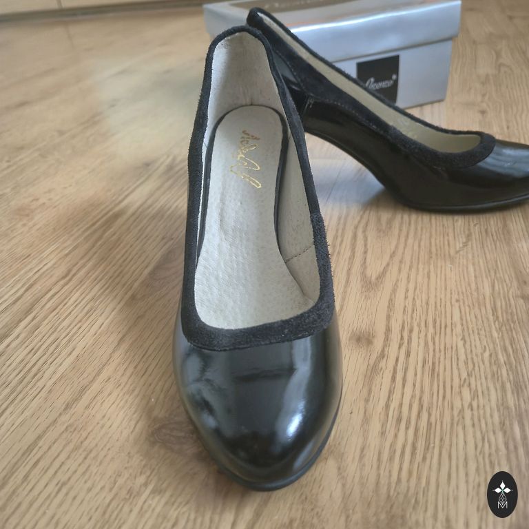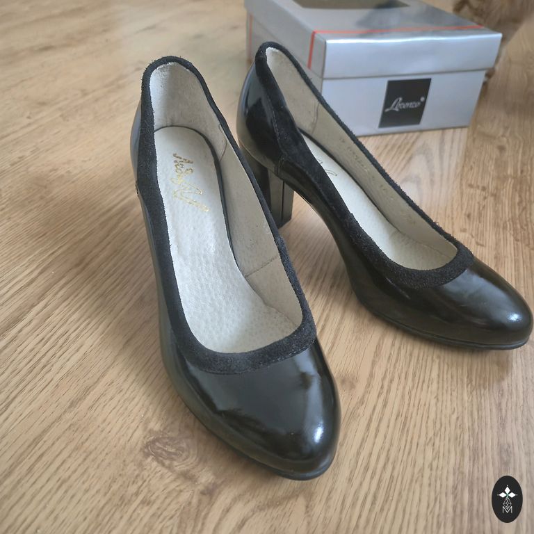 Ādas zolīte, stabils papēdis tā augstums 11 cm., iekšpēdiņa 26,5 cm. Var uzlaikot Rīgā.