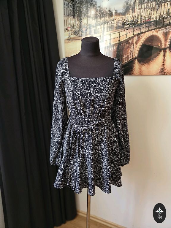 Suknelė su gėlių raštu ir apvyniojamu priekiu