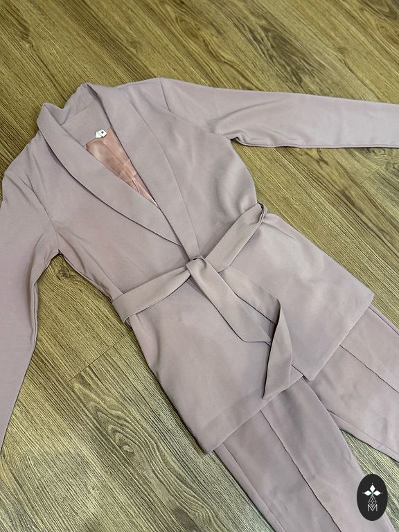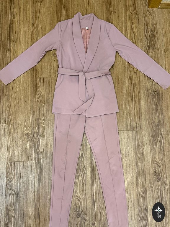 Võite ka tulla ja seda proovida, kogu teave on profiilis. Kangas: paks satiin Jope: kaenlaalused 54, talje 51, puusad 55–56, pikkus 80, jalad 65. Püksid: talje 43, puusad 54–55, pikkus 111.