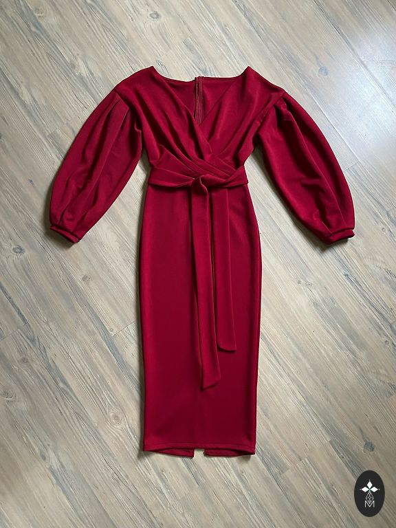 Kaunis ja pidulik kleit, mille seljal on kinnitus. Jäik ja paks kangas hoiab kleidi kellukese kuju. Kleit on voodriga. Materjal: 95% polüester, 5% elastaan. Rinnus laius: 46 cm, pikkus: 100 cm.