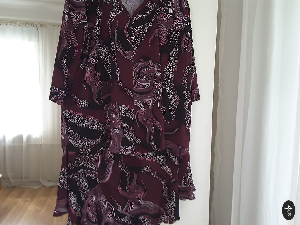 Top – comfortably spacious (underarm 110 cm), length 89 cm – for freedom in movement and elegance.