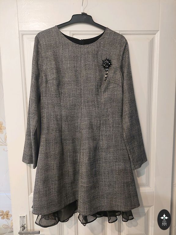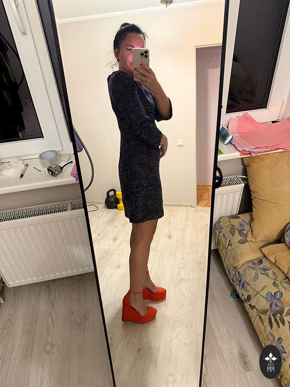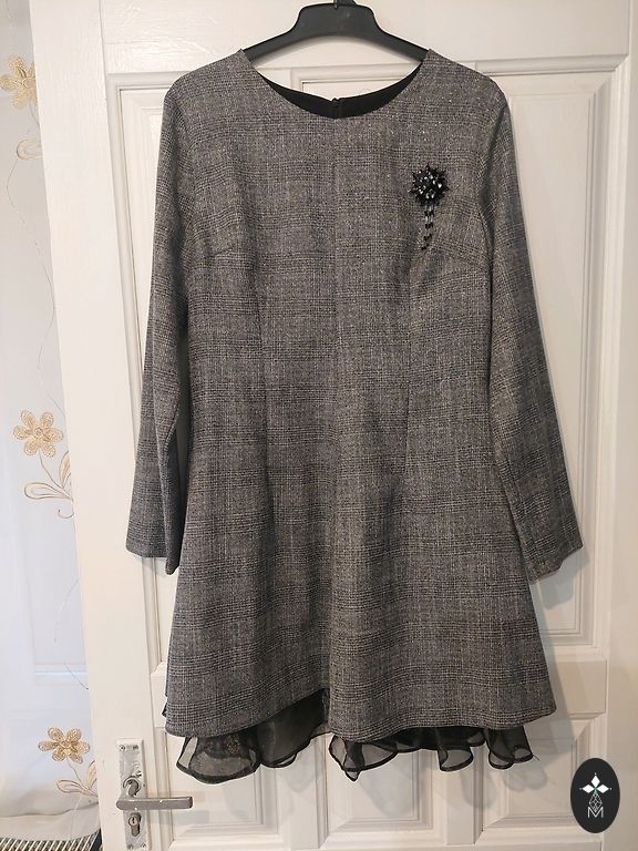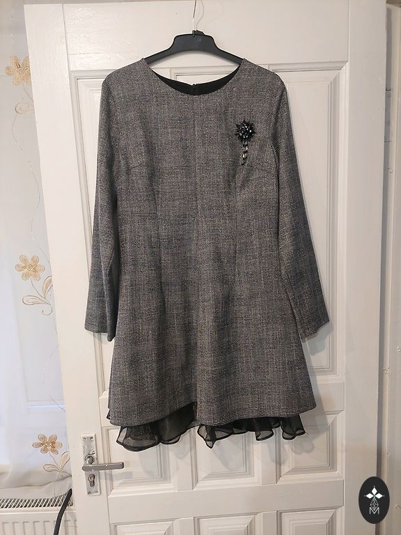 Kleita Celine stilā, dubultā, augšējo daļu var noņemt un valkāt apakšējo daļu, piemēram, ar t-kreklu. Laba stāvoklī, bez defektiem. Ļoti skaista krāsa, pelēka ar ceriņu toni.