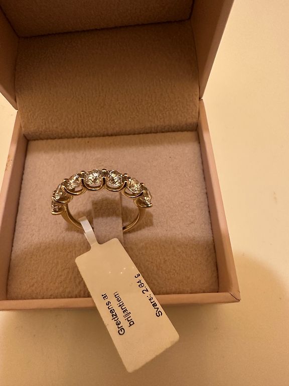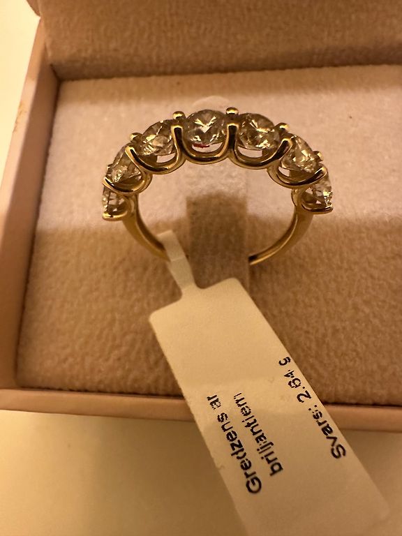 Baltas ir geltonas aukso 750° su 19 deimantais. Dydis yra reguliuojamas pagal komfortą. Latvijos Proves Biuro patvirtinimas.