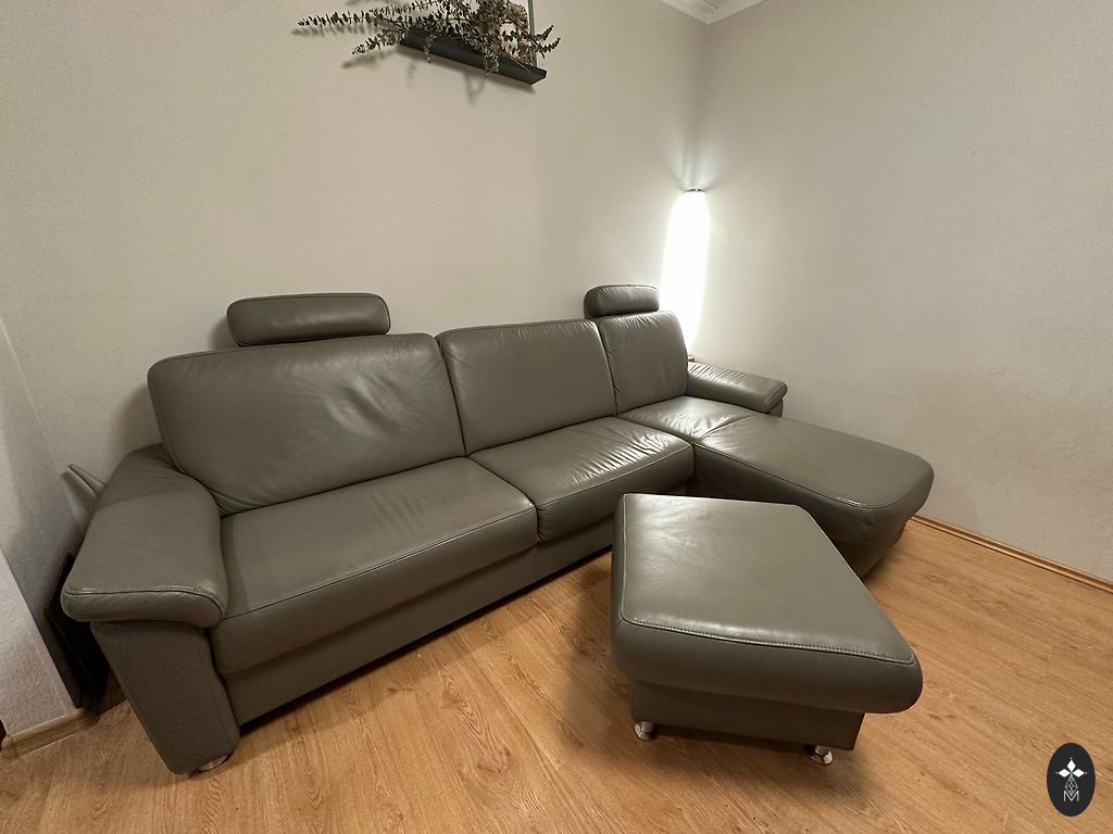 Комплект мягкой мебели - диван, кресло для отдыха, пуф. Использовался минимально, визуально как новый. Куплен на mebeles1.lv, название - Seattle E124 (Riviera 91). Находится в центре Риги.