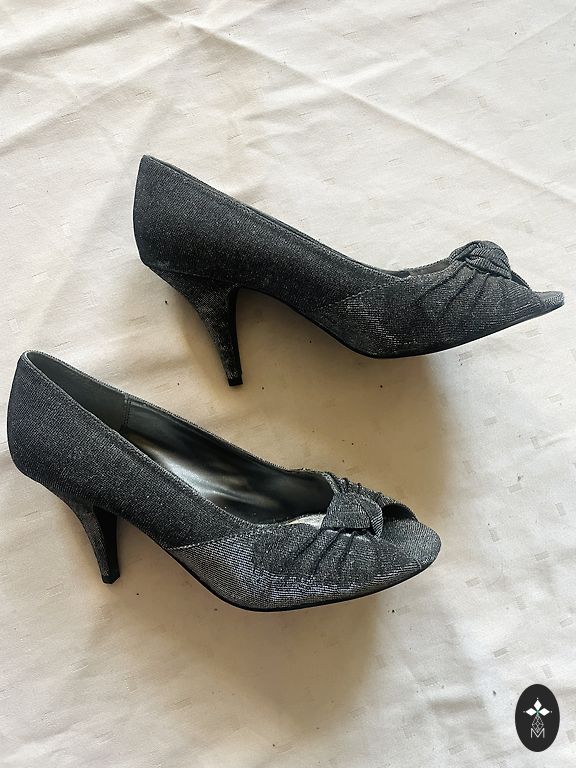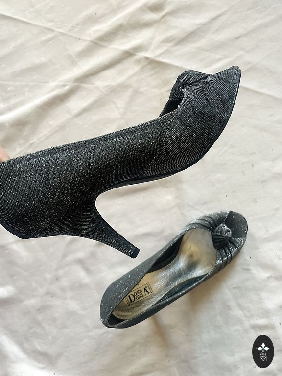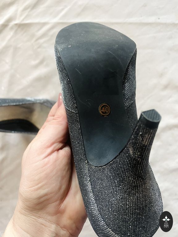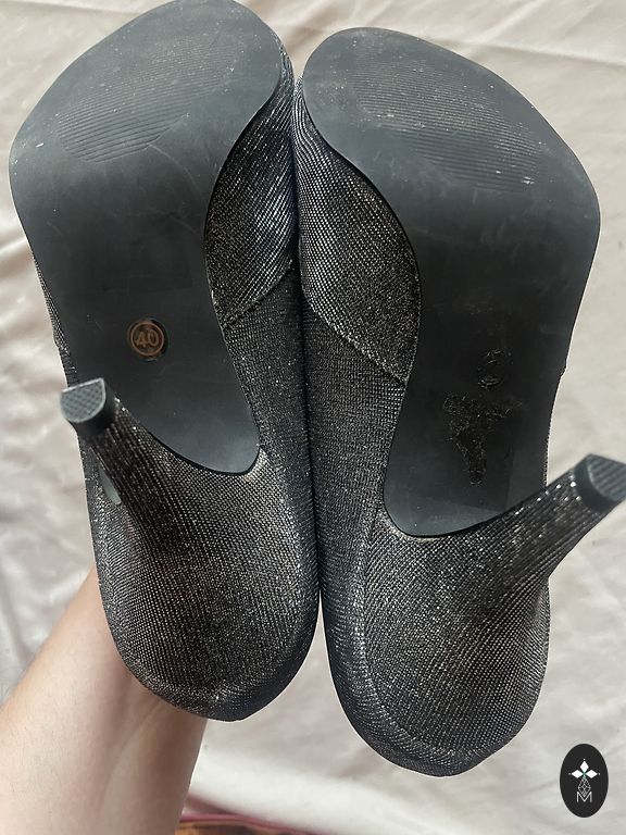Batai, dėvėti vieną kartą renginyje. Vidinis apskritimas apie 28 cm, kulno aukštis 10 cm.
