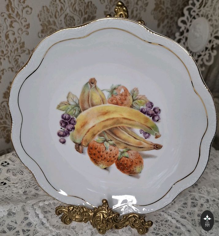 Прекрасная чайная роза украсит любой стол. Очень минимальная потеря золота по краю, больше стояла на полке. D-26 см