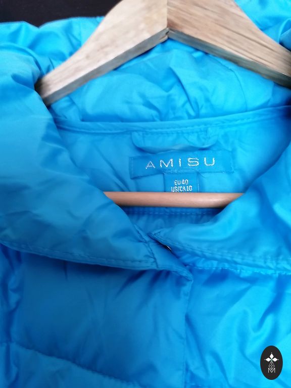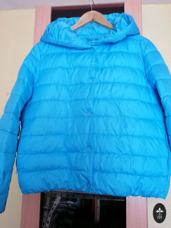 Ļoti ērta un viegla jaka no Holubar, dūnu tipa, kvalitatīva, ar patīkamu audumu, tāda kā žakete. Derēs uz M - krūtīs 45cm, viduklī 43cm, garums 65cm.