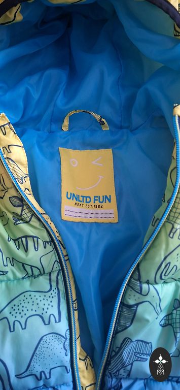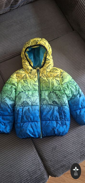 Windbreaker with a removable hood and reflectors, without insulation. Cotton lining. Size on the tag 110 (4-5 years) Length 49 cm, sleeve 47 cm. Shipping with Omniva (not included in the price).