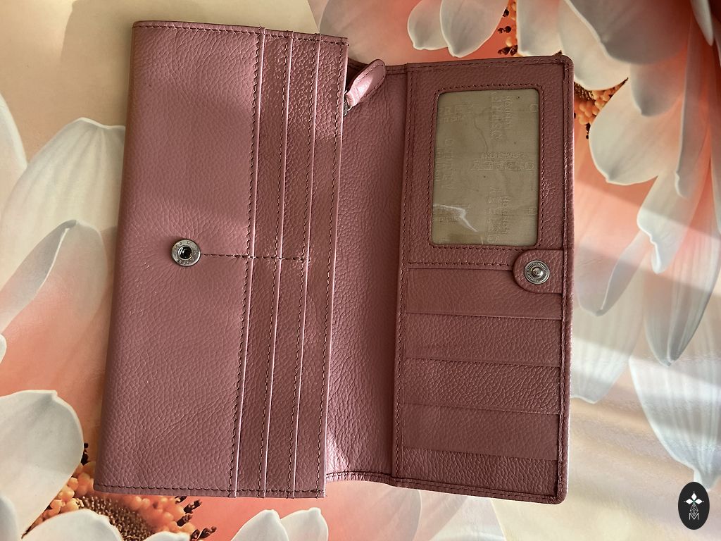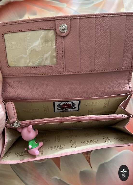 Pilnīgi jauns ādas maciņš, ļoooti daudz funkcionālu kabatiņu. Es tomēr ar rozā krāsu laikam nespēšu sadraudzēties, tāpēc došu makam iespēju uz labāku dzīvi, nekā krājumos dziļos :) Bildē visu var redzēt- daudz vietas vizītkartēm, naudai- rāvējslēdzis.