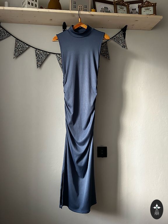 Gaumīgi volāni svārku daļā,zem krūtīm gumija. Elegants tonis un ziedu raksts.
