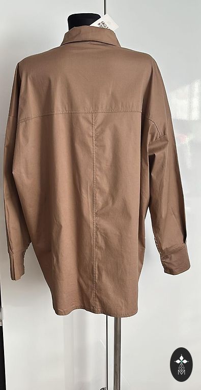 Foto var redzēt, kā izskatās uz S izmēru. Stilīgi, kā tagad modē, krop-tops, tikai plats. Kā oversize izskatās. Krāsa tumši pelēka.