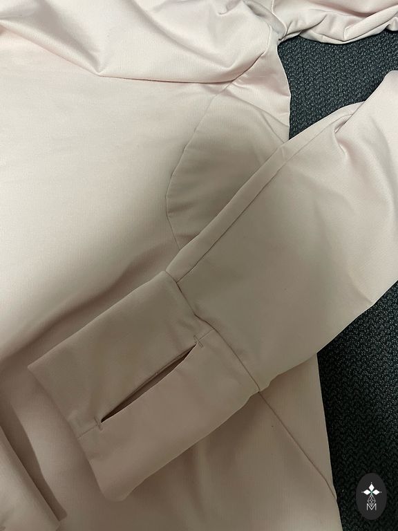 Pulled twice. Excellent top for both sports and leisure. Size S, flexible enough to fit M. Length: 60 cm, chest: 40 cm.