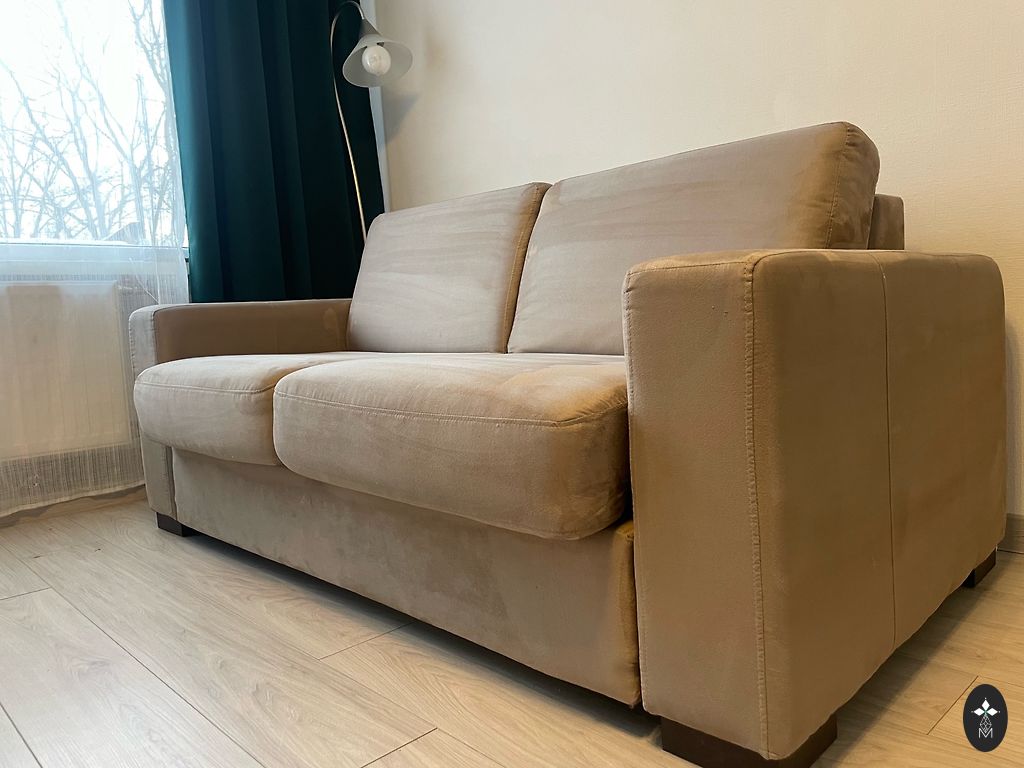 Диван 2-местный, не раскладной, каркас дерево, пружинный блок, ткань – мебельная замша. Размеры: ширина 160 см, глубина 95см, высота 100см. Бренд ARIMEX США. Находится на Югле.
