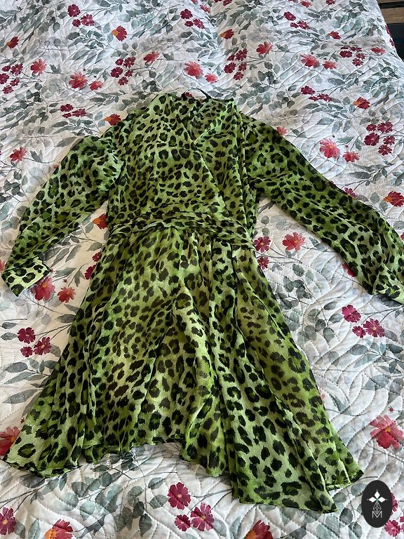 Kartą apsivilkta ryški suknelė