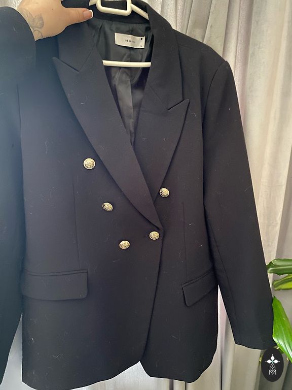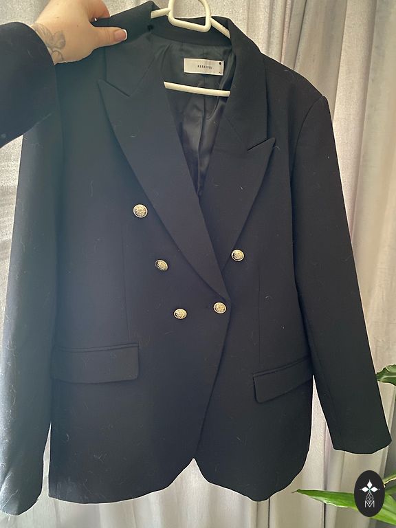 Ilgis 84 cm. Užsegus: Krūtinė 128 cm. Liemuo 132 cm. Klubai 140 cm. Rankovių ilgis 61 cm. Pečiai 13 cm, apykaklė +3 cm. Priekis užsegamas 5 sagomis. Yra dvi kišenės. Audinys vidutinio storumo, neelastingas, prabangus.