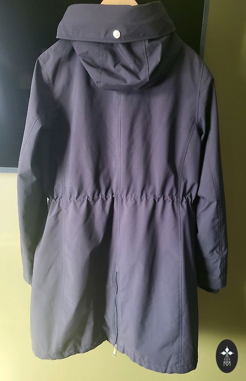 Length from shoulder - 83cm; chest width - 53cm; waist width - 50cm; hip width - 58cm. The size corresponds more to size L. The coat has been cleaned at a dry cleaner.