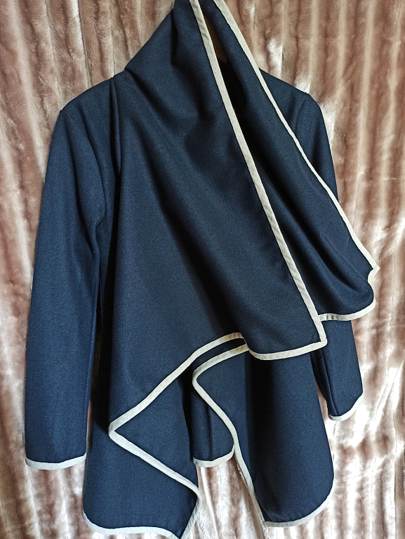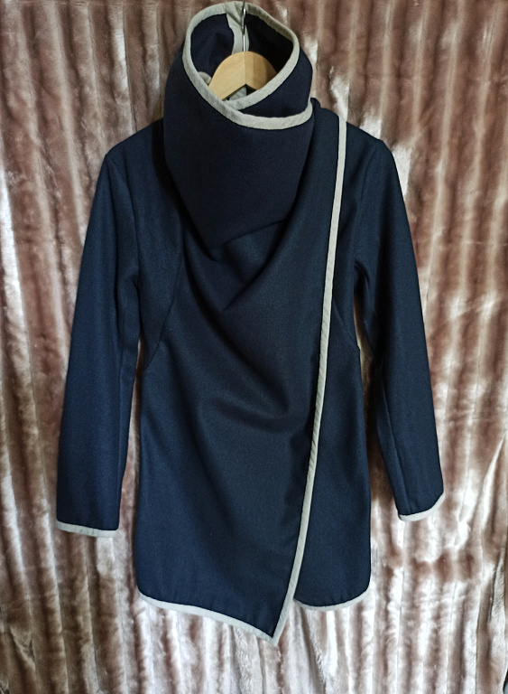 Mētelītis vēsam rudenim ,siltai ziemai.iekšpusē savelkas. Krūšu apkārtmērs 46×2, garums 93 cm.