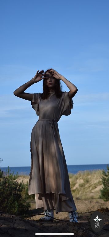 Pidulik S-suuruses midi kleit. Kantud kord lõpetamisel, on üles tõmmatud niidid, kuid neid saab lihtsalt parandada. Kleit ostetud Riias, Klerr. +1,85 eurot kohaletoimetamine.