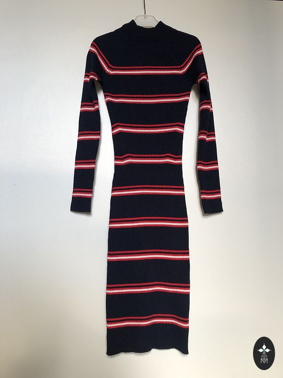 Tamsiai mėlyna MIDI suknelė.