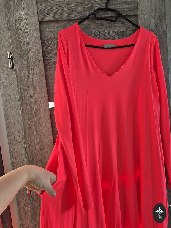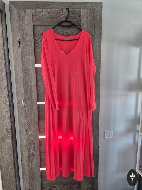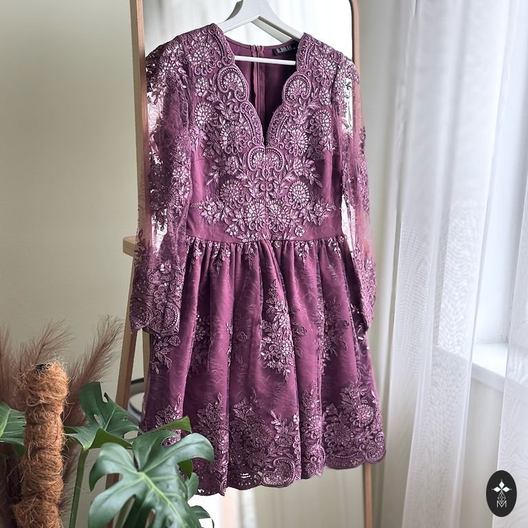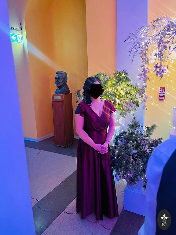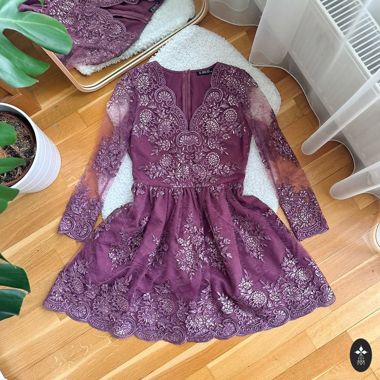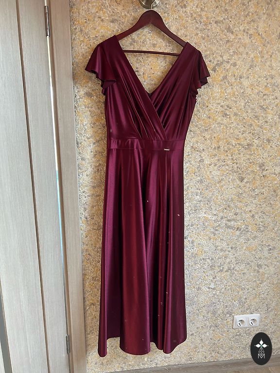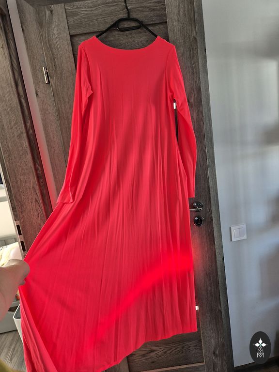38 izmērs, uz augstumu 170cm+/-, komplektā vēl ir šalle ar ko var nosegt pleces no tāda paša materiāla