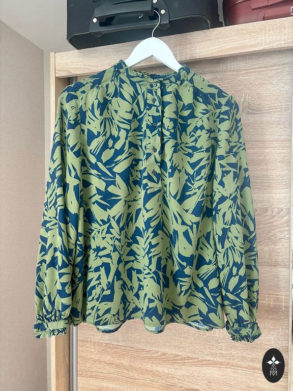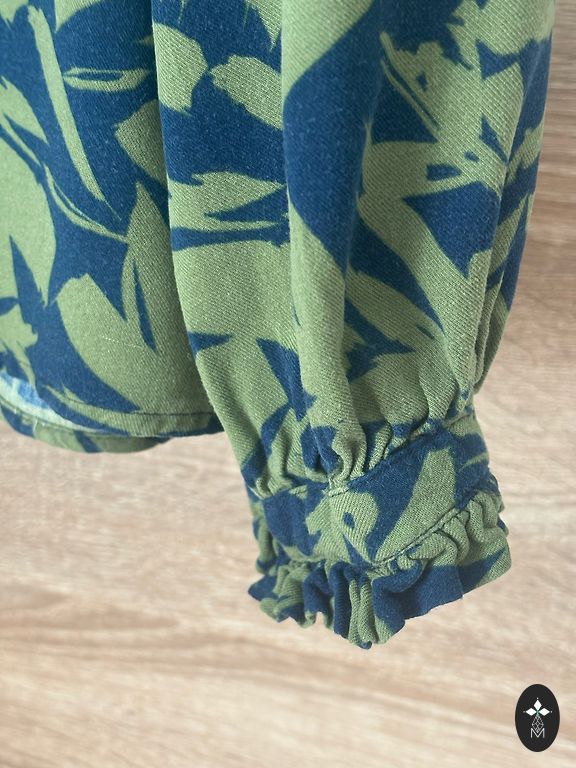 Viegla un ērta rudens/pavasara jaciņa, kapuci var nopogāt. Zem padusēm 52 cm, garums 67cm un piedurknes garums 68 cm no plecu līnijas. Defektu nav.