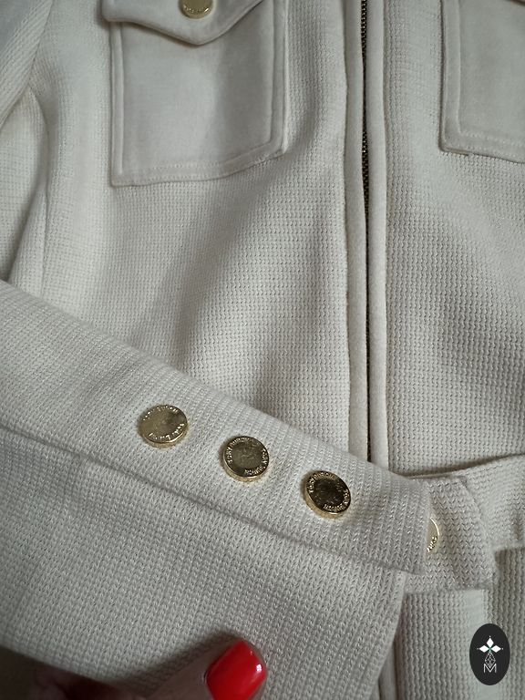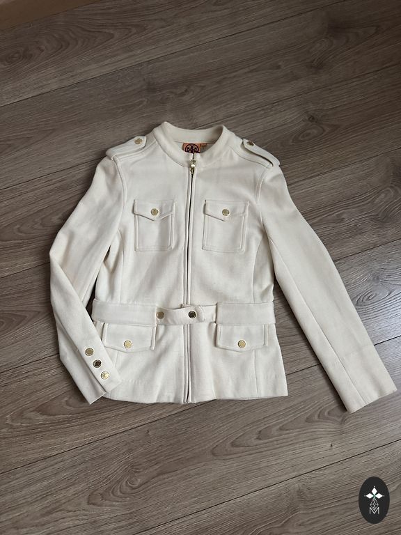 Krāsaina garā jaka. Garums 75,5cm, pogājamā daļa 48cm, platums zem padusēm 42cm, rokas garums no pleca 60cm.