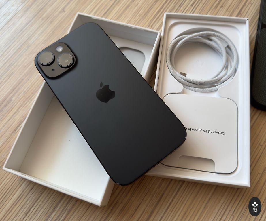 Pridedama telefono dėžutė, laidas. Taip pat originalus Apple dovanų maišelis ir originalus Apple silikoninis dėklas, kuris yra ant telefono, bei apsauginis stiklas.