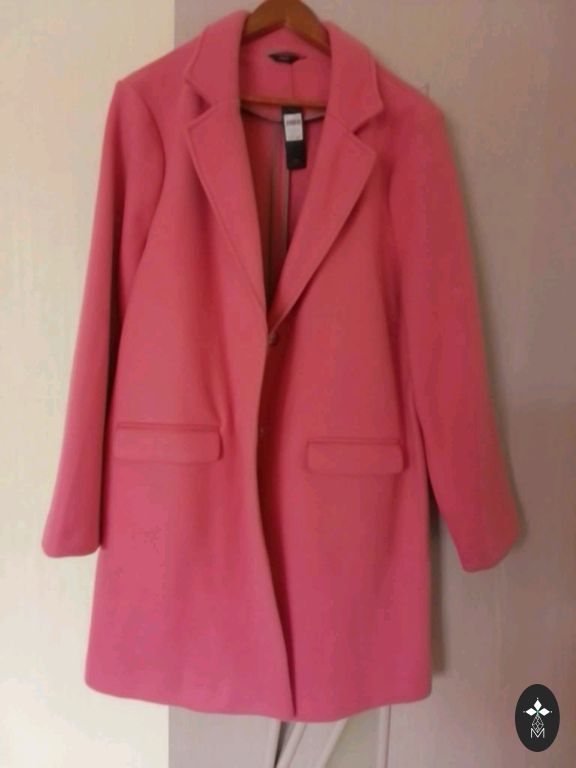 Pagal etiketę 50 dydis, krūtinė 126 cm, klubai 130 cm, rankovė 65 cm, ilgis 98 cm