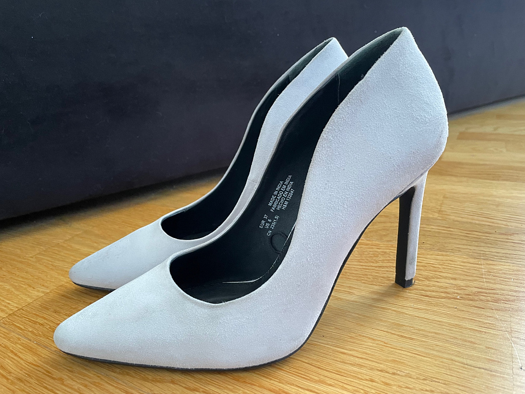 Оригинальные туфли. Заказала из Америки. Стоили 150 евро. Несколько раз надевала дома, но поняла, что они мне не подходят (каблук 11 см, платформа в самом широком месте 3 см, поэтому они удобные). Длина стопы 26,5 см.