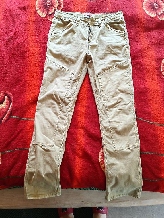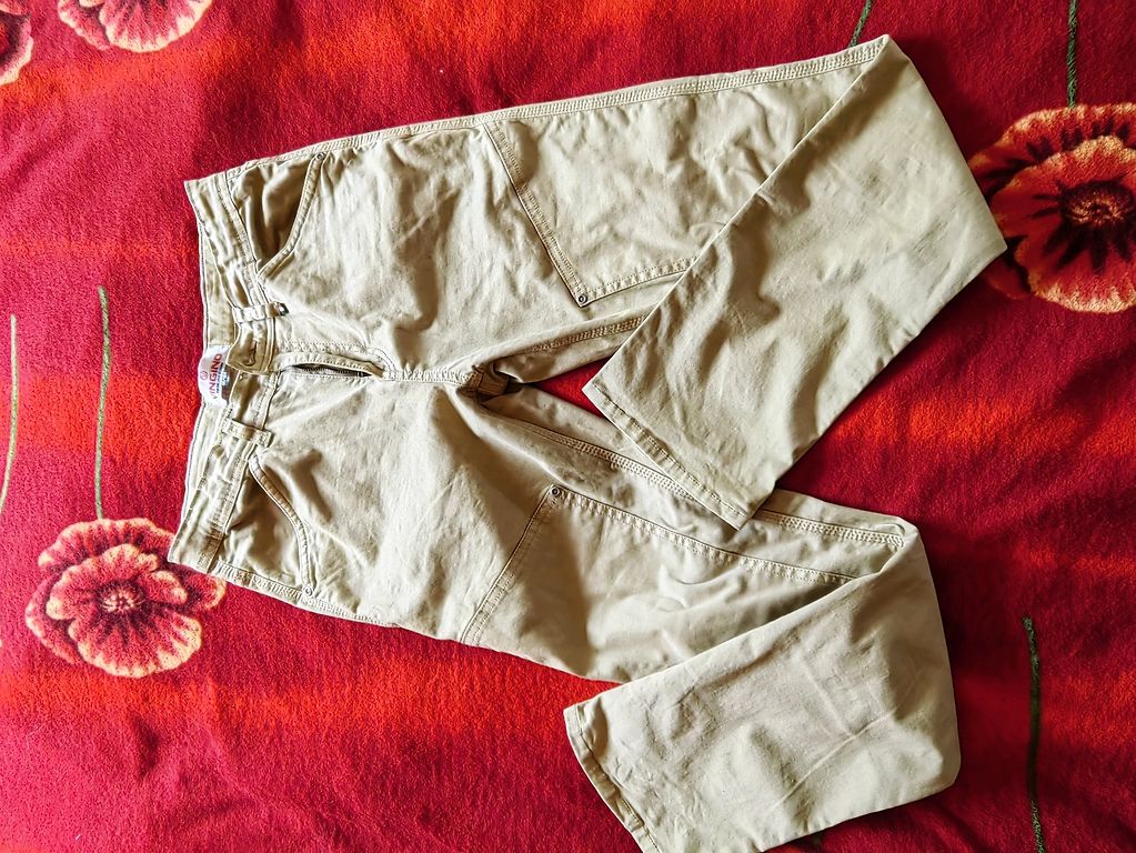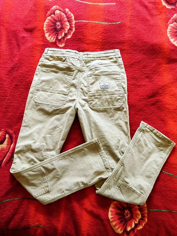 Pārdodu āra bikses, ar kokvilnes oderi iekšpusē. Ražotāja izmērs ir 92. Bikses garums ir 56,5 cm, vidukļa apkārtmērs ir 27 cm, bet var regulēt ar šņorēm. Kājas platums apakša arī regulējams.