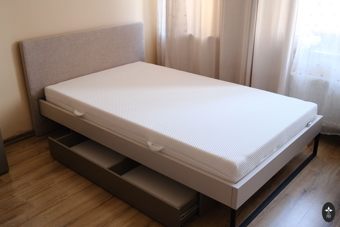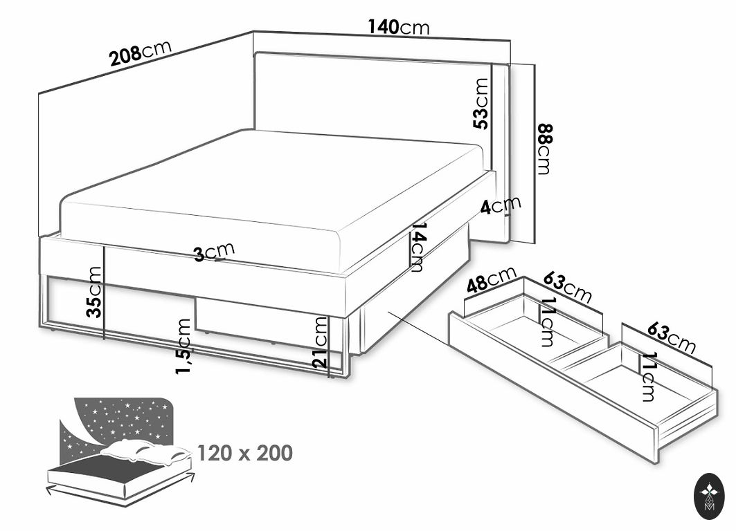 Augstums 186 cm, platums 78 cm, ar trepēm 88 cm, garums 210 cm. Matrača garums 200*70cm. Ir 2 matrači.