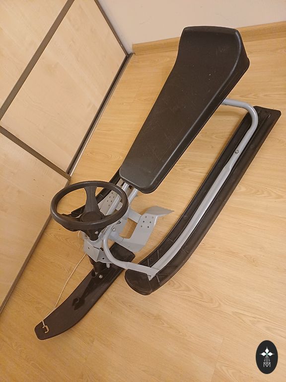 Новые сани STIGA с рулем серого/черного цвета. 120*36*50,5 см. Материал: сталь, пластик. Макс. вес пользователя - 90 кг.