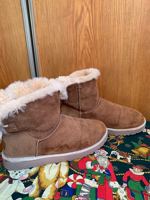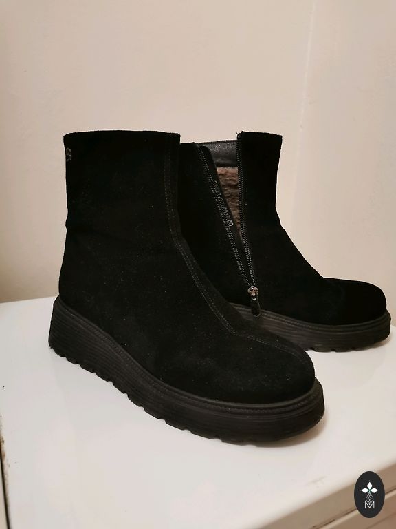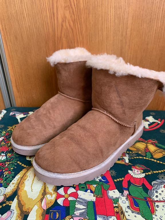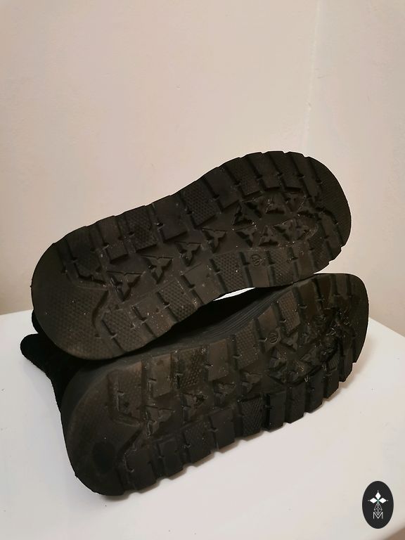 Be defektų, vidpadis apie 27 cm. Aulo dalis, pėda - avikailis, vidpadis - oda, neslystanti padas.