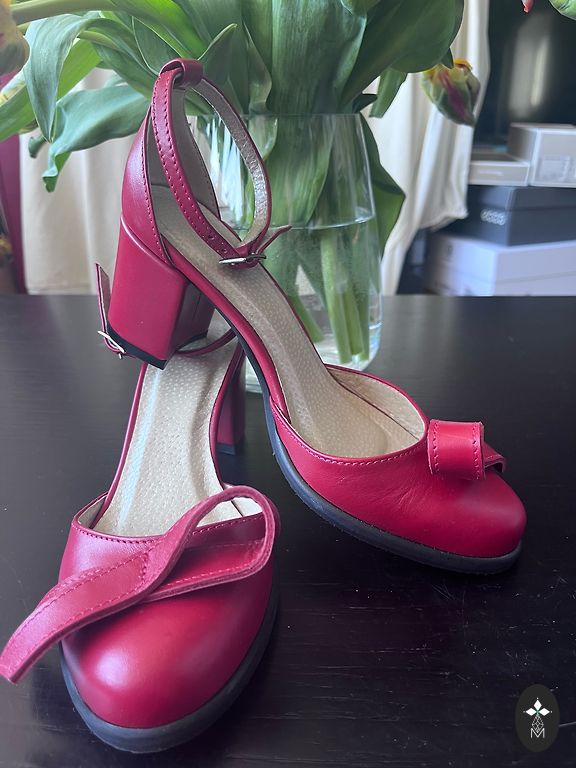 Туфли кожаные на высоком каблуке. Ручная работа.