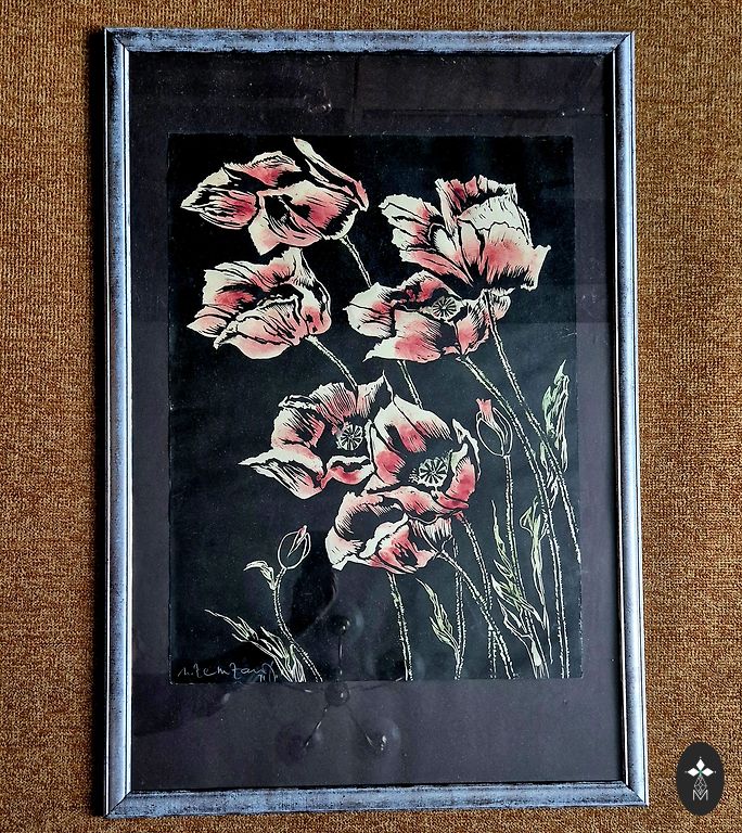 Gleznas izmēri 42×52 cm. Koka rāmis.