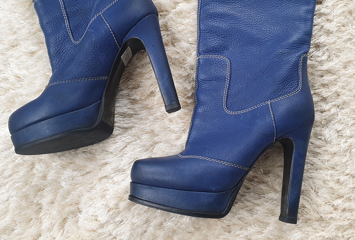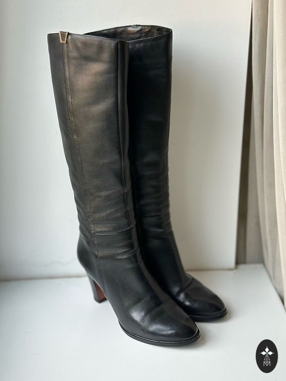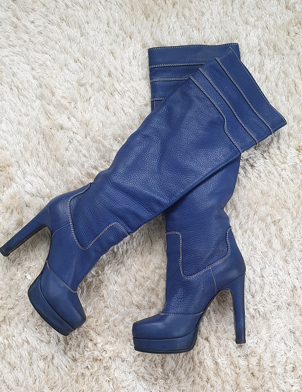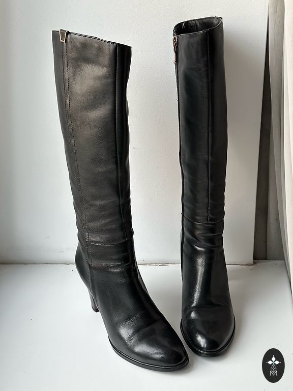Lietoti gaiši brūnas krāsas ādas zābaki, papēdis 7cm, labā stāvoklī, ir nelieli nobrāzumi.