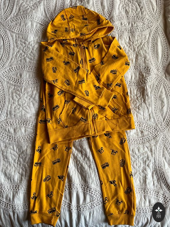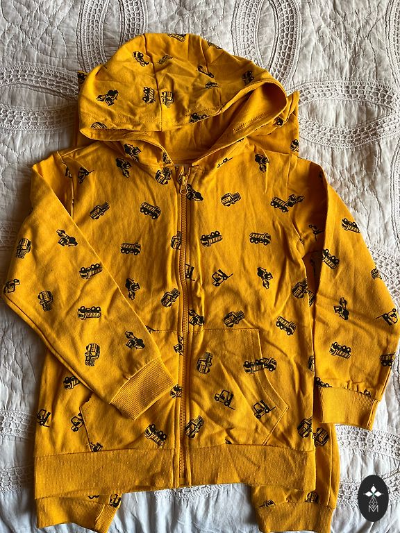 Ilgarankoviai marškinėliai - be dėmių, bet audinys nėra kaip naujų. Rudos velvetinio audinio tipo kelnės. Hoodie. Dydis daugiausia nurodytas 6-7 metai, bet berniukas vilkėjo penkerių su puse metų, tada viskam rankovės tapo per trumpos, nes jis turi ilgas rankas. Ryškiai mėlynas Bogi tiks stabiliai 6 metams. Bogi su rykliu, mažai naudotas, vilkėtas 1 kartą, nėra naudojimo žymių. 5 naujos apatinės kelnaitės pakuotėje (ne boksininkų šortai, bet paprastos apatinės kelnaitės..berniukas atsisako tokias vilkėti) ir mažai naudoti boksininkų šortai. Baltas trumpų rankovių marškinėlis, džinsiniai šortai ir tt. Kaip jau minėjau, kai kurie daugiau vilkti, kai kurie mažiau, bet dėmių nėra nė vienam, tik audinys truputį susidėvėjęs. Pridėtas Marvel džemperis, kuris nėra matomas nuotraukoje. Dydžiai nurodyti įvairūs, kai kas tiks greičiau, kai kas bus didesnis. Siuntimą apmoka pirkėjas.