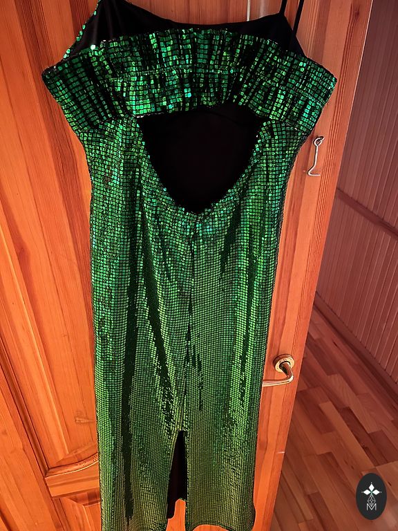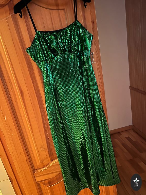 Pārdodu uz auguma šūtu kleitu, derēs 38-40 izmēram. Nav ne reizi izgājusi sabiedrībā. Kleitai krūšu vietā iestrādāts polsterējums. Garums-100cm.