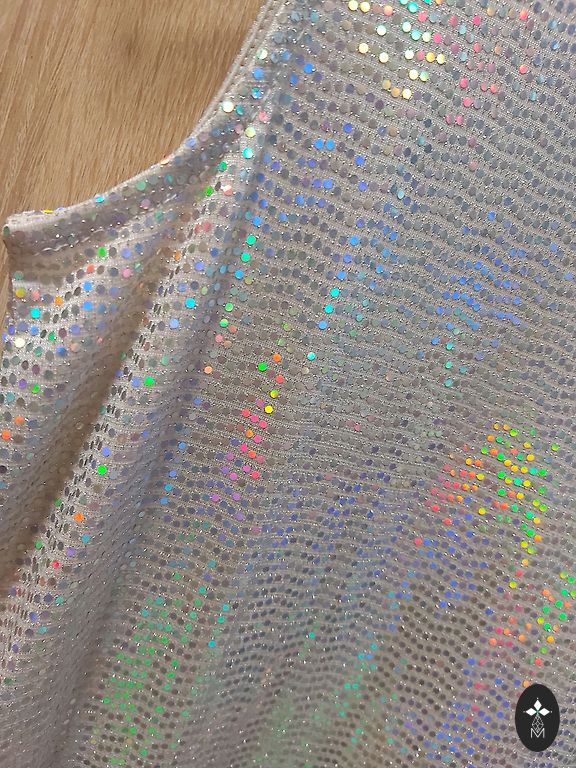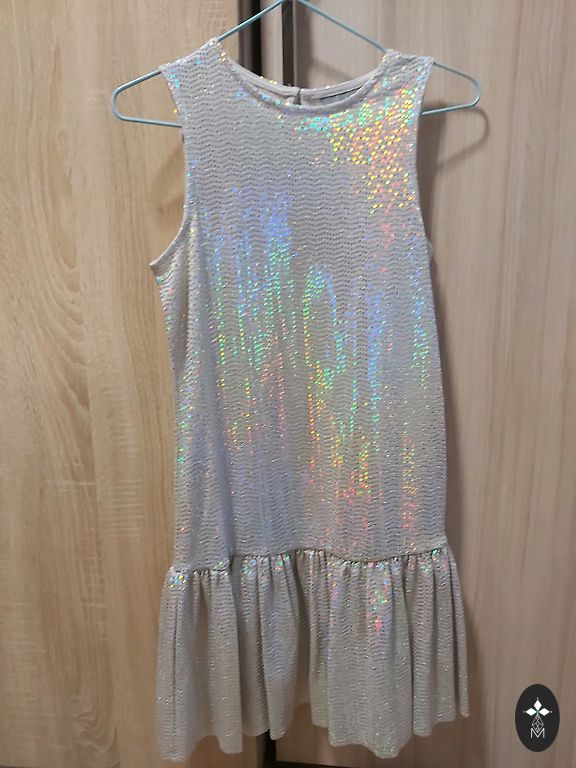 Nuo vienos pažasties iki kitos yra 33 cm, suknelės ilgis 1 m.