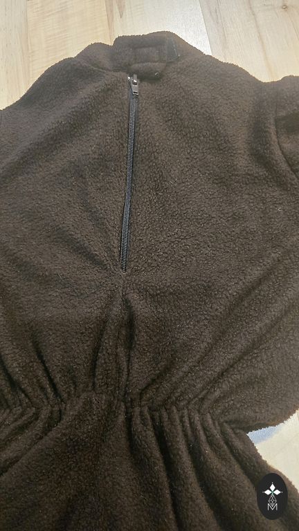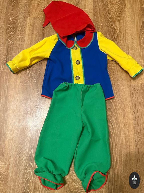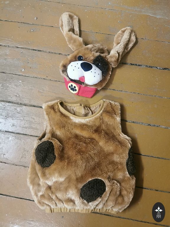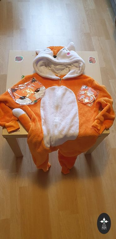 Sildil märgitud suurus 110-128 cm (4-8 aastat). Pehme, sametine kangas. Kostüüm haidiseiniga – seljal uimed ja väike saba. Kapuuts kinnitatav takjaribaga, varrukad saab üles keerata, et katta käsi. Kostüüm on väga kergesti selga pandav.