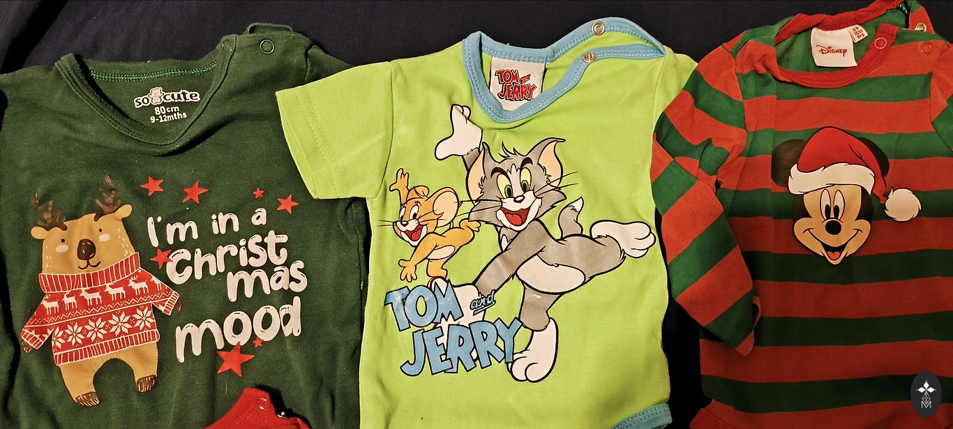 Väga ilusad jõuludeks mõeldud pidžaamad, kombinesoon. Pehmed ja mugavad, nööpidega, sealhulgas ka jalgevahel, et mähkmete vahetamine oleks lihtsam. Suurus märgitud 9–12 kuud. Ma ütleks, et pigem 68 cm. Hind 5 € (+ postikulu)
