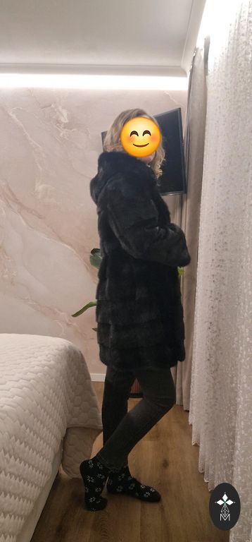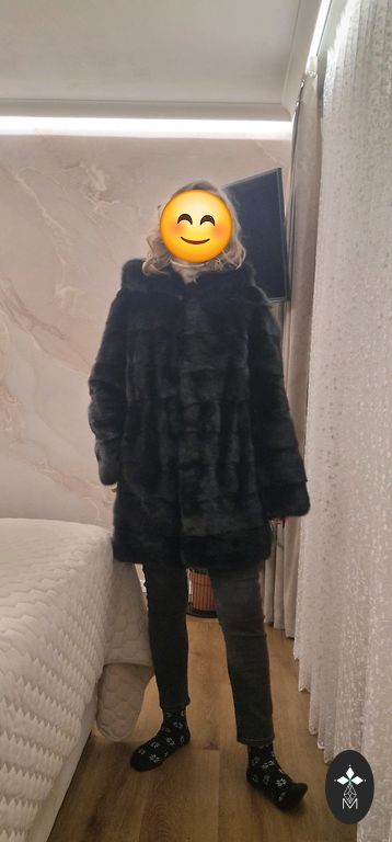 Mink coat transformable 2 in 1, knee-length and short sheepskin coat for a car lady, black mink in excellent condition, size S-M. Lightweight, warm, beautiful.