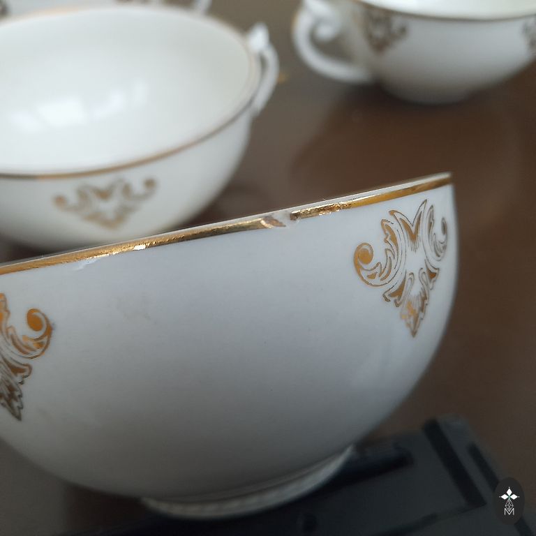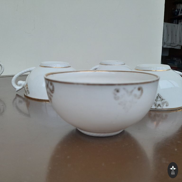 Pārdodu Rīgas porcelāna rūpnīcas trauku komplektu "Viktorija", konplektā ietilpst kafijas/tējs servējamā krūze ar vāciņu, krūzītes (11 gab) un apakštasītes (12 gab).