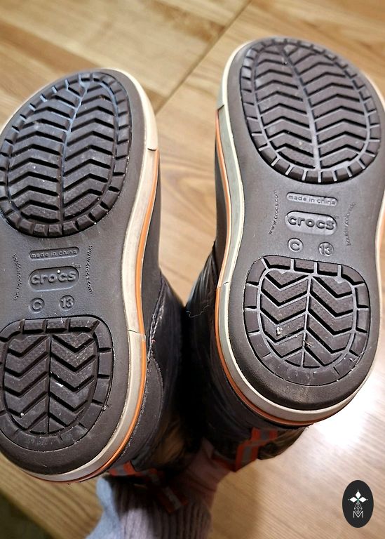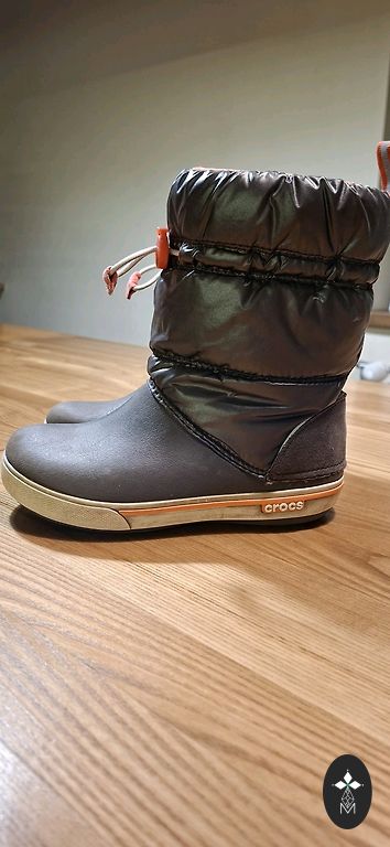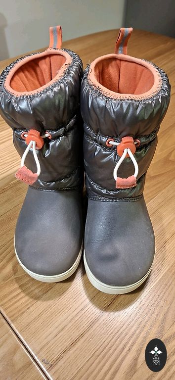 Crocs ziemas zābaki, izmērs C13 (30./31.izm.). Pirkti jauni, valkājis viens bērns. Lietus vai sniegs - kājas vienmēr bija sausas un siltas, kvalitatīvi zābaki. Uz auduma nebūtiski noberzumi, citādi ļoti labā stāvoklī.